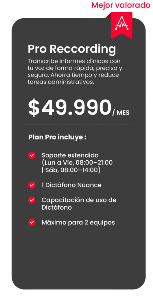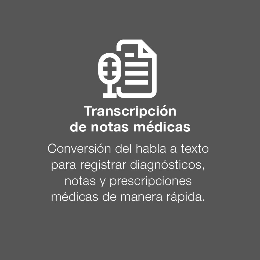 Sistema de reconocimiento de voz para informática clínica: transcribe diagnósticos y notas médicas desde el habla, ahorra tiempo, mejora la precisión e integra datos directo en la HCE.